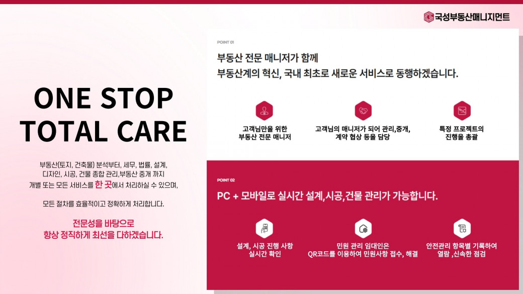 국성부동산매니지먼트 회사 소개서 ver.2 2025-02-28 ㆍ 국성 조회 466 회 본문 PDF 파일을 다운받으시면 더욱 선명하게 확인이 가능합니다! 첨부파일 국성부동산매니지먼트 회사 소개서 ver2.pdf (26.4M) 이전글국성부동산매니지먼트 회사 소개서 ver.3 다음글공인중개사님들의 매매 매물을 무료로 홍보해 드리겠습니다! 목록보기
